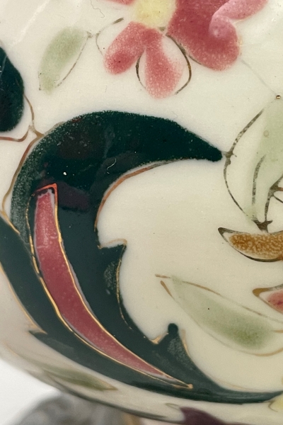 Majolika auf Zinkgussfuß, welcher ehemals bronziert war