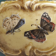 Satinierte, gelippte Tulpe, blau gefärbetes "Röckchen", im satinierten Bereich mit Blumenmotiven bemalt